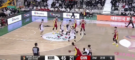 随即比赛进行,中国队开始增加对李贤重的佳夹击,效果不错。紧接着曾凡博尝试远投,转过来,李政玹投篮命中。韩国队的三个射手,都在尝试投篮。旋即,胡明轩、张镇麟上场。