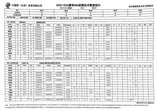北京时间2025年12月18日19:35,2025-2026赛季CBA联赛第三轮继续进行,山西汾酒主场迎战浙江稠州金租。两队历史上共交手45次,山西汾酒20胜25负,上赛季常规赛两队交手2次,山西汾酒1胜1负。本场比赛,山西队上半场发挥欠佳,对重点人盯防做得不够好,中场调整后,球队在攻防两端均有所起色,对篮板球的保护做得比较好,末节更是凭借三分线外的连续发挥成功逆转取胜,最终全场比赛结束,山西汾酒102:91战胜浙江稠州金租。