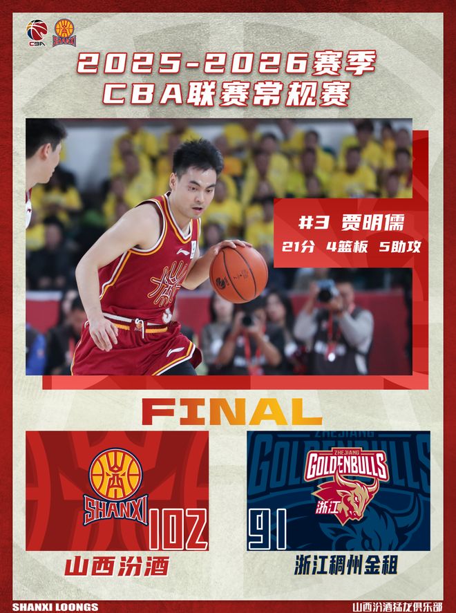战报 | 逆转取胜 山西汾酒102 : 91战胜浙江稠州金租