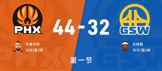 波杰姆斯基单打吉莱斯皮抛投打板继续追分,布克单挑穆迪又造成犯规两罚全中,穆迪真防不了布克。波杰姆斯基压哨后撤步三分,不得不说打太阳这两场球波杰发挥确实不错,布克外线还以颜色,小佩顿掩护犯规,布克三不沾伊戈达罗补扣,TJD篮下2+1双方围绕5分分差来回拉锯。布克突分伊戈达罗再吃一饼,巴特勒后仰跳投也有,狄龙顶开TJD左手抛投,双方这命中率高得离谱。波杰姆斯基突分失误了,古德温三分飚中,分差被拉开就是勇士失误太多了,伊戈达罗大跨步飞扣36-24比分被拉开了,理查德三分机会把握了,巴特勒转换造犯规,首节还剩1分43秒先进个暂停,回来巴特勒罚球。两罚全中后比分追到29-26,太阳进攻古德温三分又是大空位稳稳把握,这防守太差了!巴特勒后仰,布耶抛投,波杰姆斯基两罚一中,狄龙压哨三分太阳首节44-32领先12分!