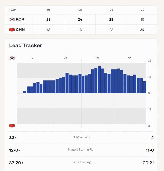 本场比赛中国男篮最多落后对手32分,只在最后一节打出单节24-10的攻击波,最后输给对手14分。