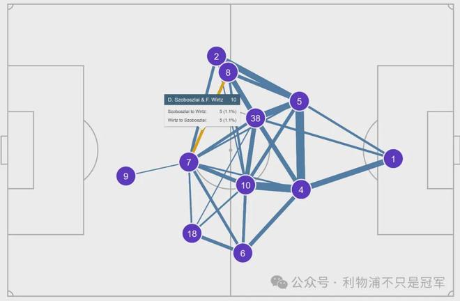 OPTA的数据表明,本场维尔茨和索博斯洛伊之间共完成10次成功传球,相互各5次,显示了两人之间良好的呼应关系。
